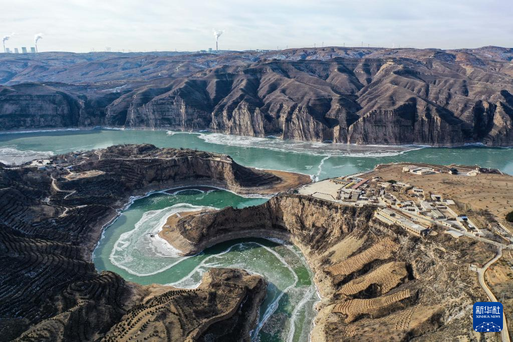这是12月18日拍摄的位于呼和浩特市清水河县和山西省偏关县交界处的老牛湾(无人机照片)。