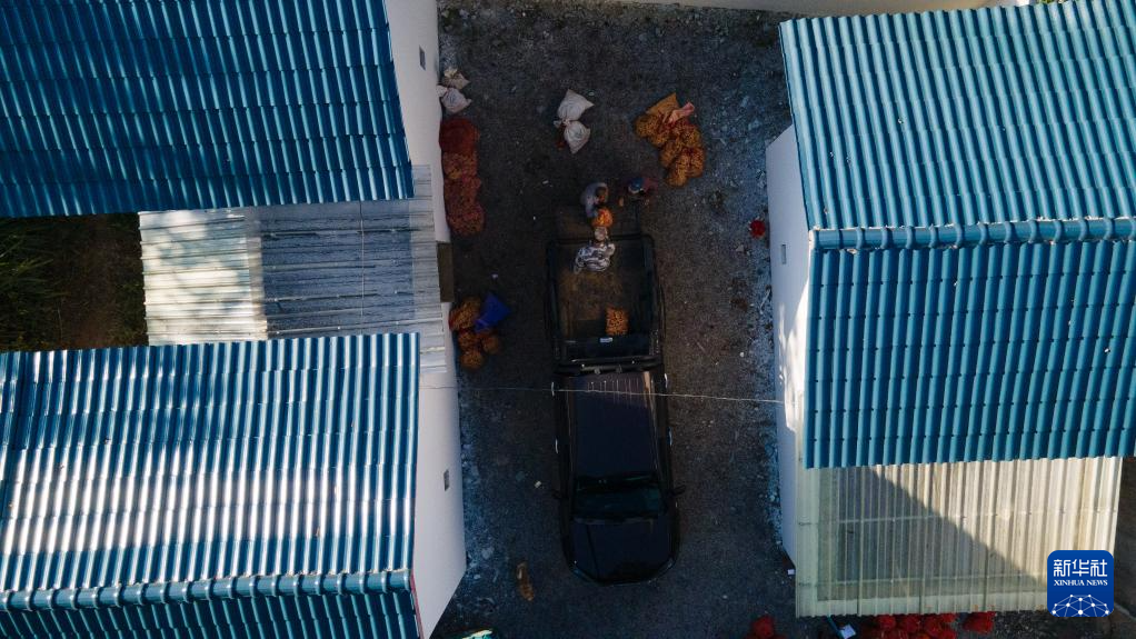 11月7日,当日是立冬,在安徽省铜陵市郊区大通镇大院村,村民准备把姜种放入姜阁中(无人机照片)。