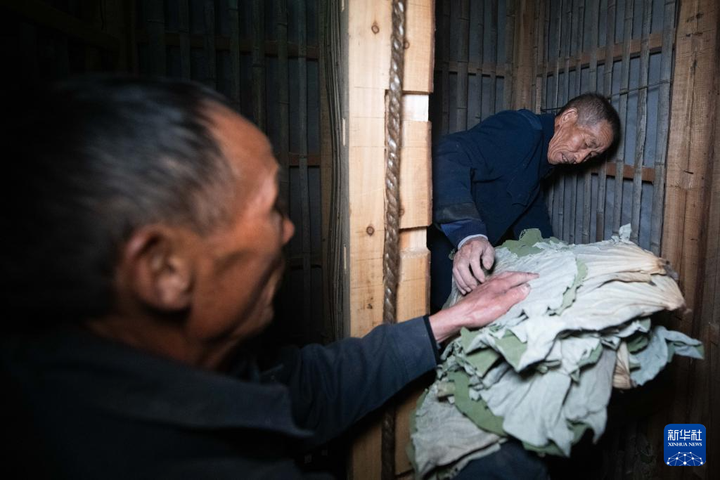 11月24日,在安徽省铜陵市义安区天门镇五峰村,“姜把式”盛义武准备使用芭茅草生火,为存放在姜阁里的姜种增温保暖。