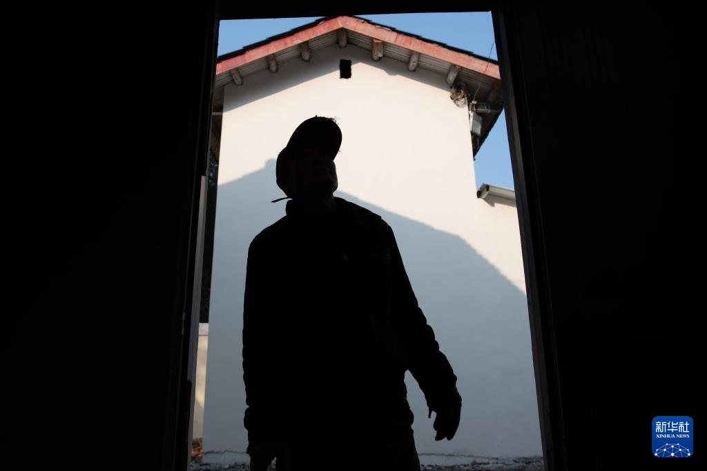 11月23日,在安徽省铜陵市义安区天门镇五峰村,“姜把式”盛义武在查看姜阁内部的情况。