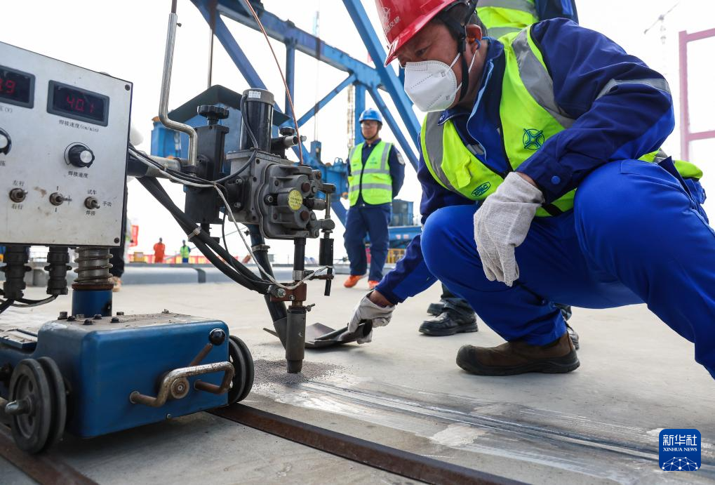 12月24日,施工人员在顺德大桥合龙段焊接最后一条焊缝。