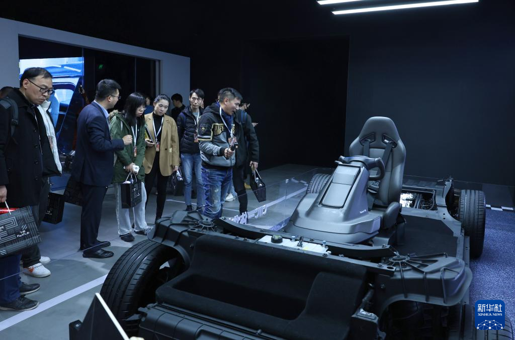 12月24日,嘉宾在发布会现场观看经过时速120公里中心柱碰试验的“战损版”磐石底盘。