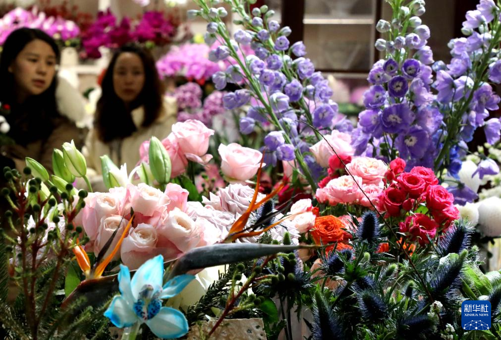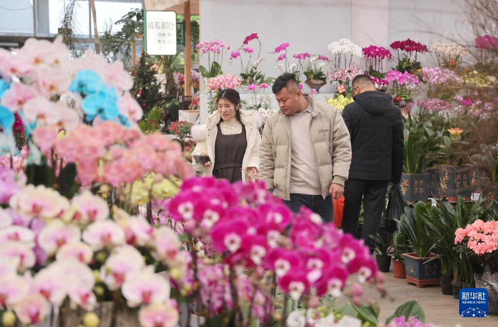 新年临近,各地花卉市场日渐火爆,人们选购花卉装饰居室,迎接新年。
