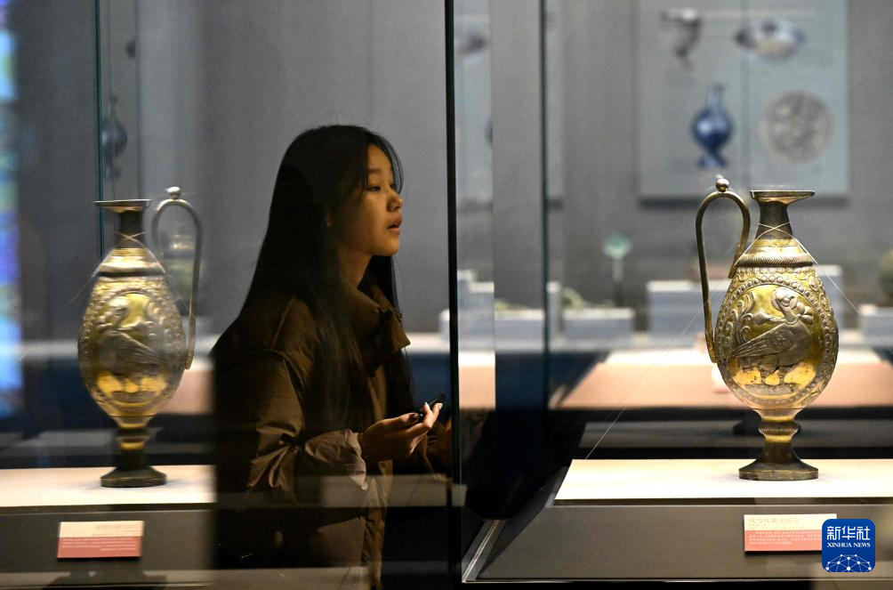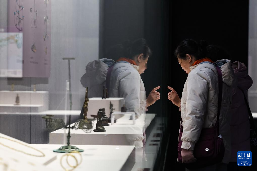 12月24日,参观者在河北博物院观看“五色之金——亚洲古代金属艺术展”。