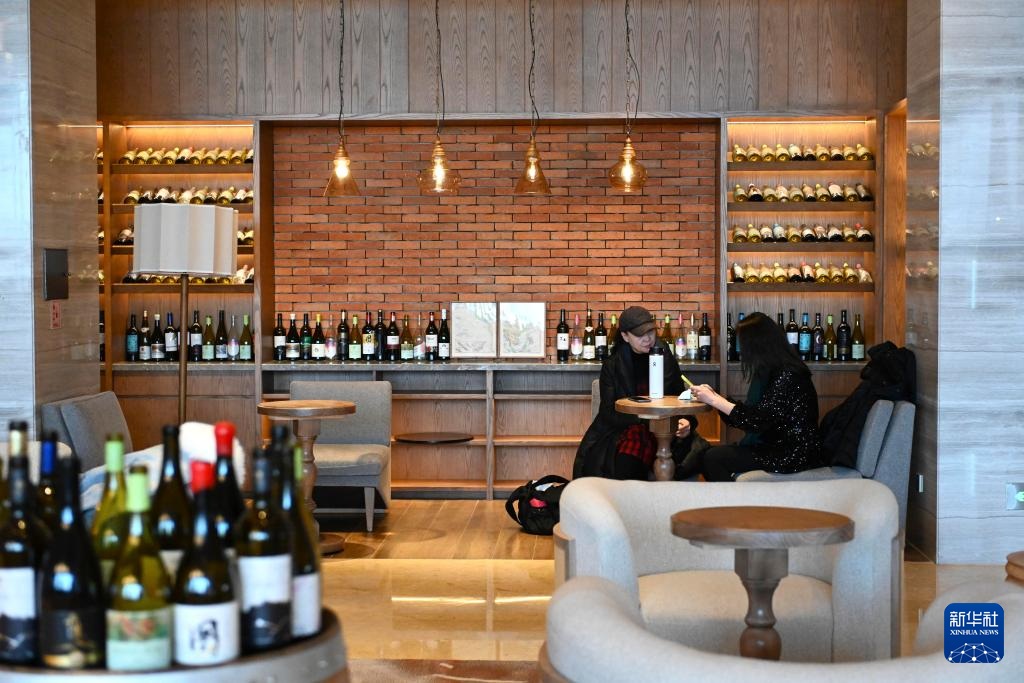 11月27日,游客在位于宁夏青铜峡市的西鸽酒庄品酒。