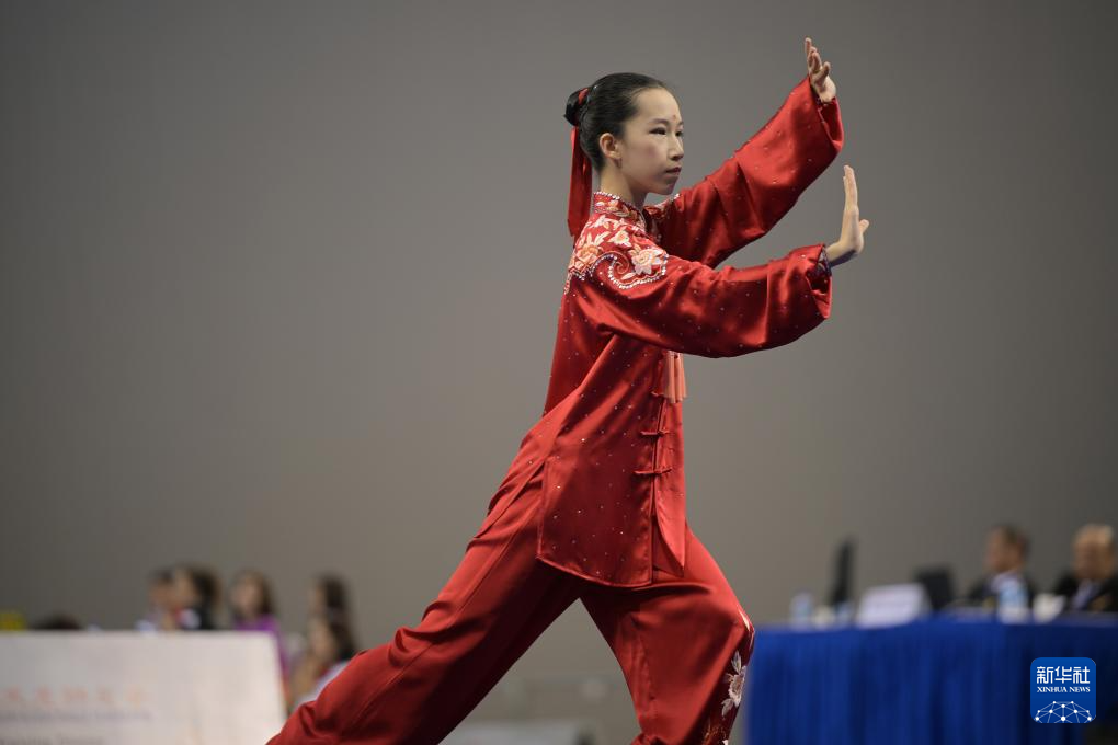 这是2024年8月27日,中国选手邓智瑄在第四届世界太极拳锦标赛武式太极拳(46式)比赛中。
