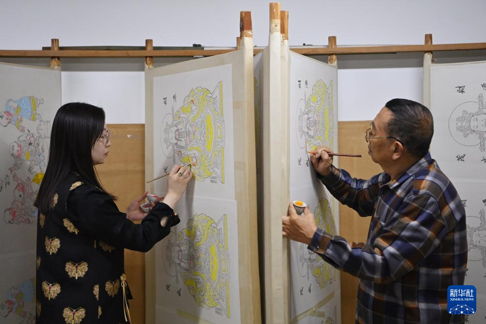 12月25日,“玉成号”年画坊的画师在绘制杨柳青木版年画。