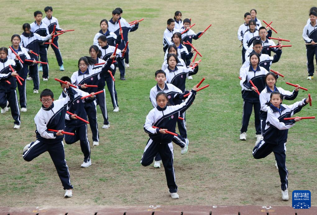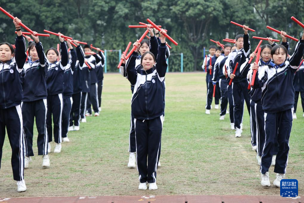 12月23日,深圳大学附属中学初中部的学生们在体育课上练习英歌舞。