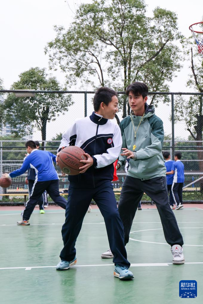 12月23日,深圳大学附属中学初中部的学生们在体育课上练习篮球。