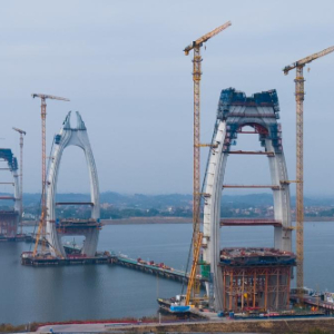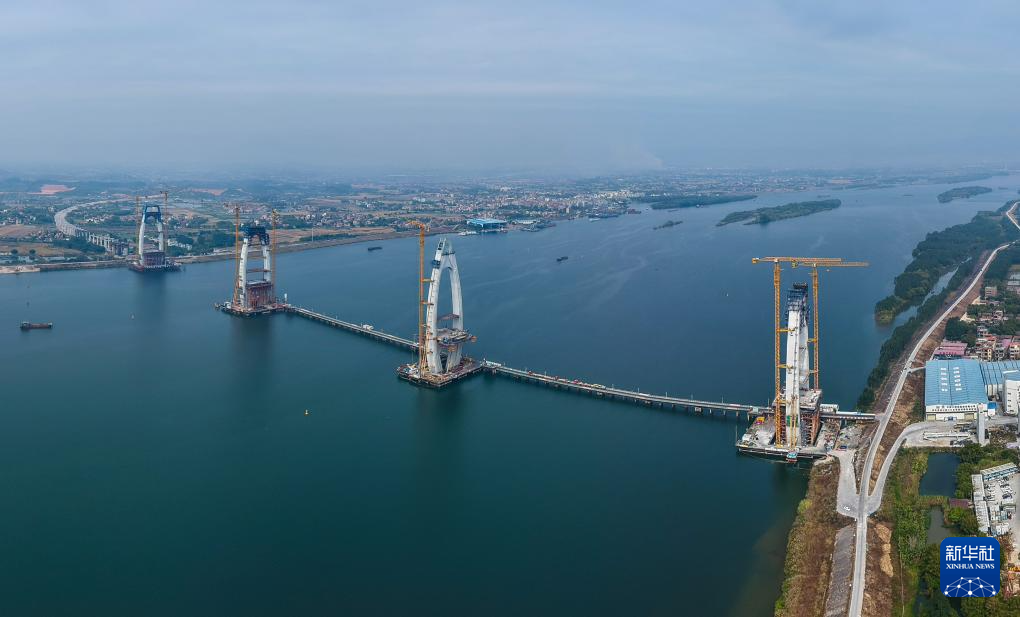当日,由广东交通集团投资、中铁大桥局承建的清(清远清新)花(广州花都)高速公路北江特大桥首个主塔封顶。清花高速北江特大桥主桥全长1440米,为主跨360米的钻石型四塔双索面半漂浮体系斜拉桥。