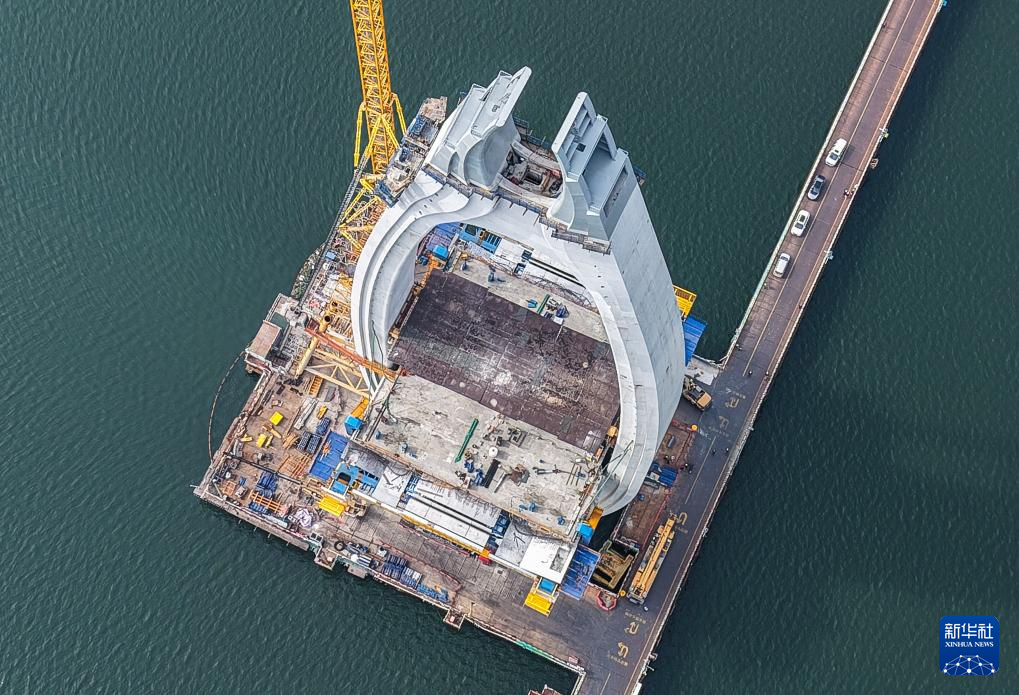 这是12月25日拍摄的清花高速北江特大桥封顶的主塔(无人机照片)。
