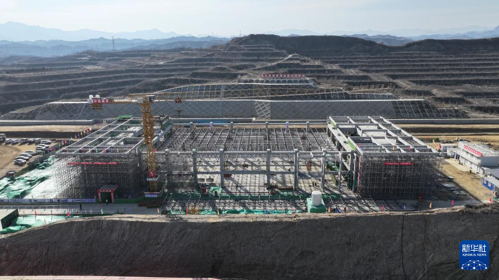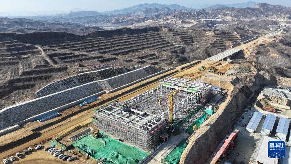12月25日拍摄的雄忻高铁阜平站(无人机照片)。