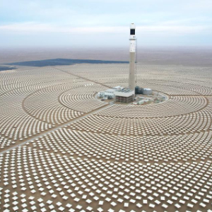 甘肃省酒泉市金塔县白水泉光电产业园内,建设中的金塔中光太阳能“光热+光伏”试点项目(12月25日摄,无人机照片)。