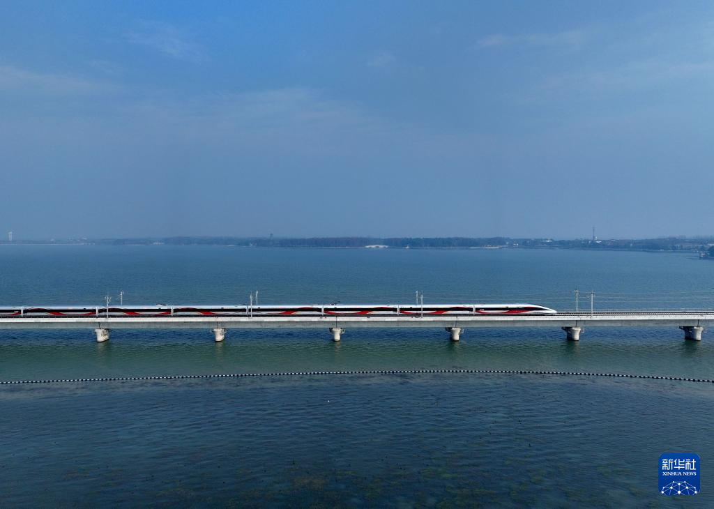12月26日,列车驶过沪苏湖高铁元荡湖段。