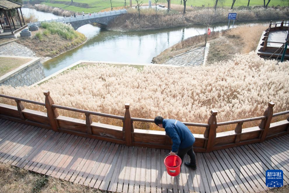 12月19日,巡河志愿者许凯在隋唐大运河通济渠泗县段捡拾垃圾。