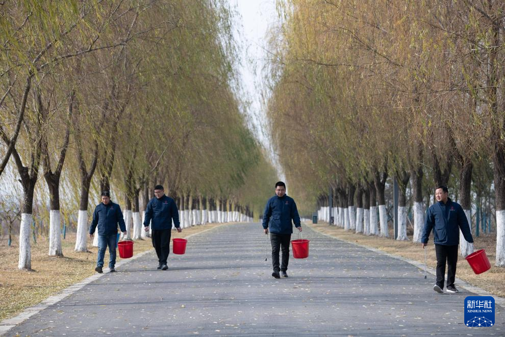 12月19日,巡河志愿者许凯(右二)和其他志愿者走在隋唐大运河通济渠泗县段旁的小路上,准备捡拾沿岸垃圾。