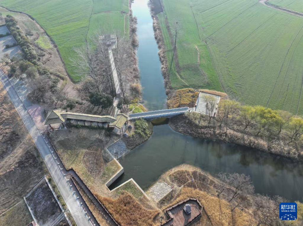 这是12月20日拍摄的隋唐大运河通济渠泗县段风景(无人机照片)。