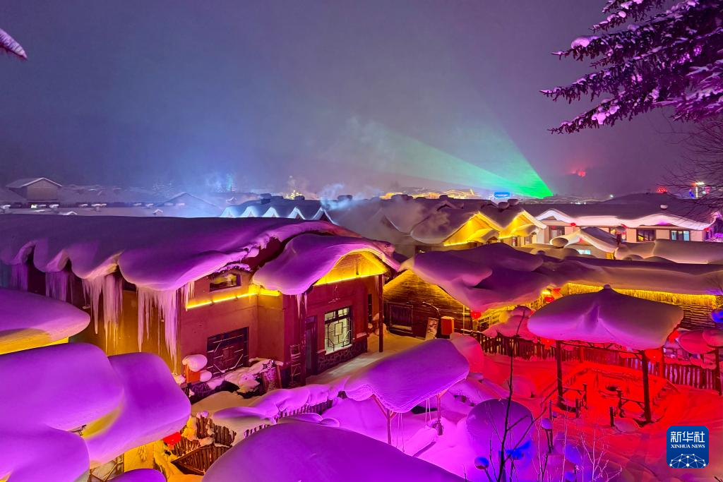 这是12月28日在“中国雪乡”景区拍摄的夜景。