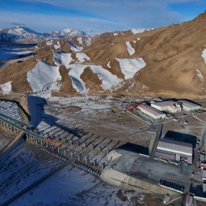 这是在新疆和静县拍摄的乌尉高速公路天山胜利隧道出口及建设中的公路(2024年12月25日摄,无人机照片)。