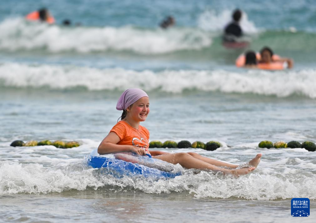 8月28日,外国游客在三亚市大东海游玩。