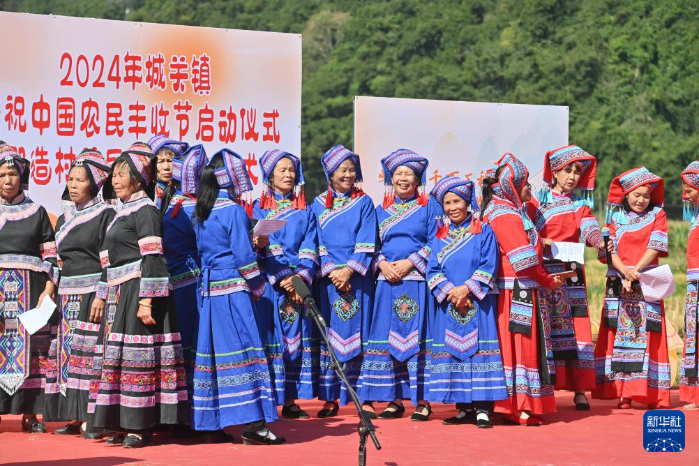 村民们在那造村首届稻田文化艺术节上唱山歌(10月30日摄)。