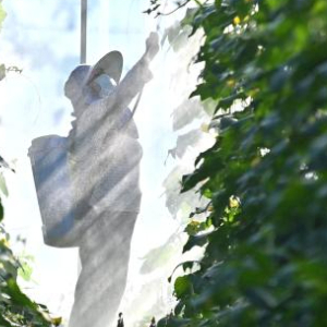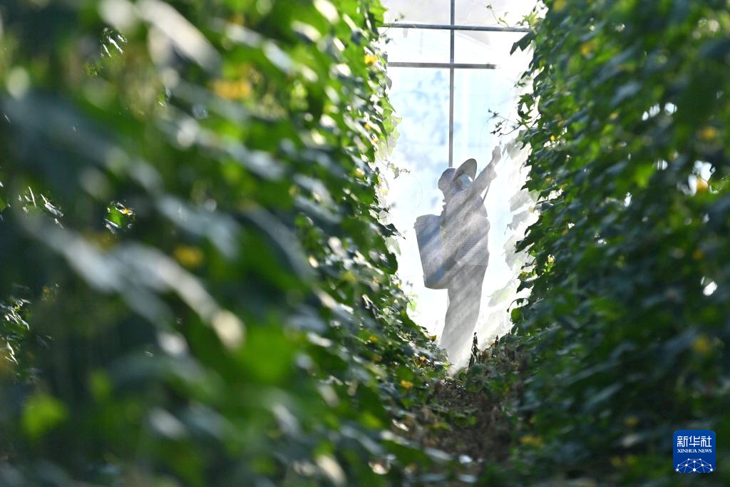 村民在那造村白玉丝瓜种植基地开展管护工作(10月29日摄)。