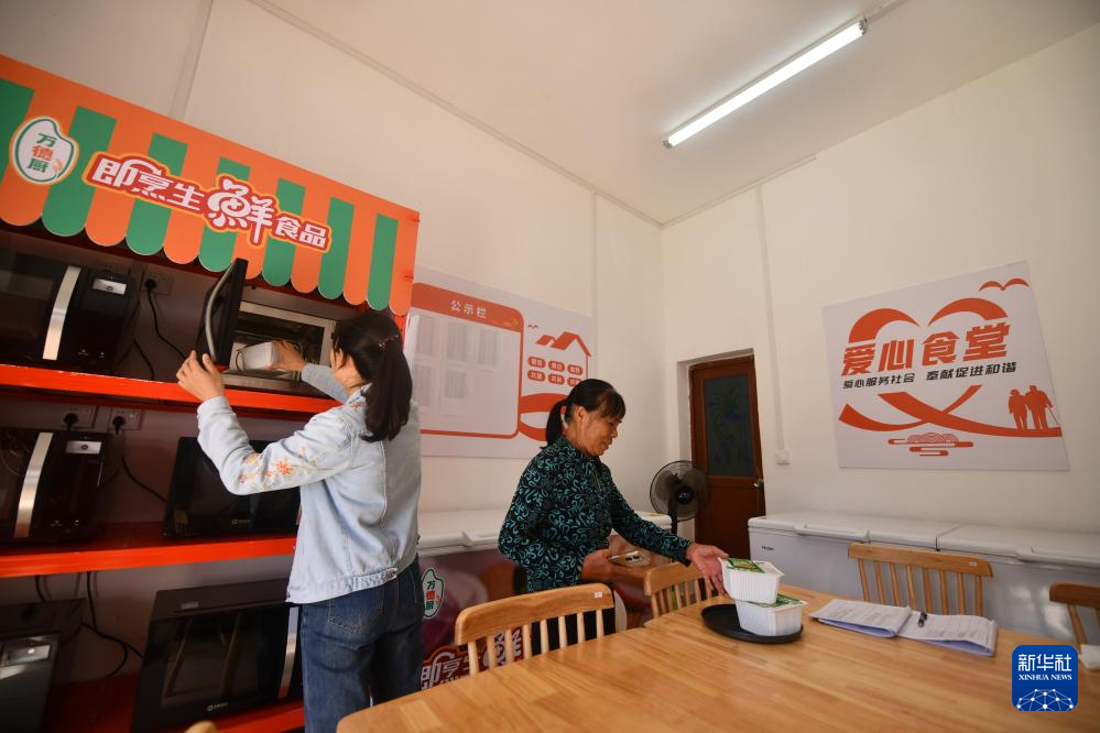 在那造村爱心食堂,老人在领取爱心餐(10月29日摄)。
