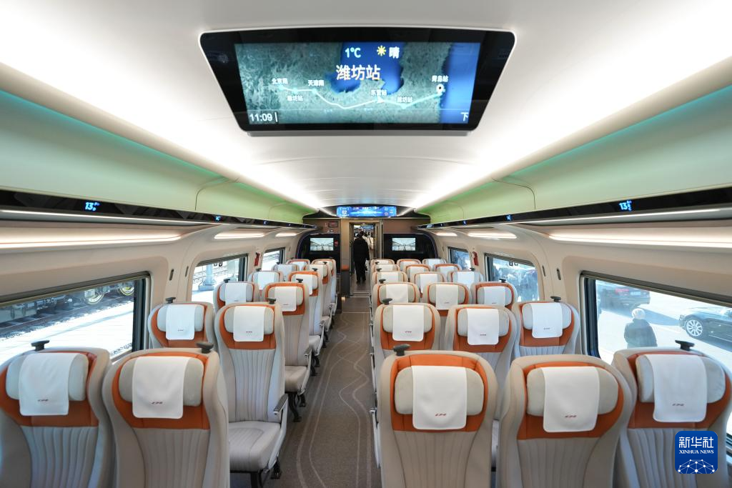 12月29日拍摄的CR450AF动车组样车车厢内部。