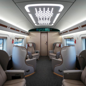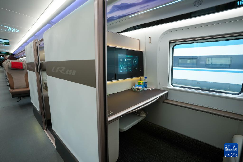 12月29日拍摄的CR450BF动车组样车车厢商务座。