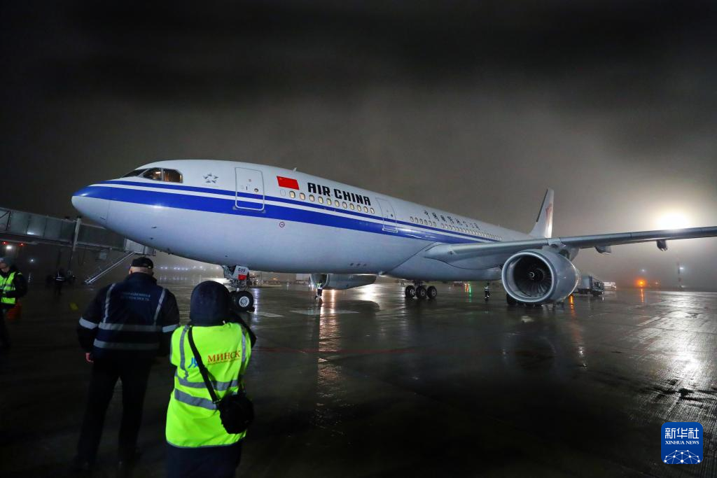 12月28日,在白俄罗斯明斯克国家机场,北京-西安-明斯克航线首航飞机进港。