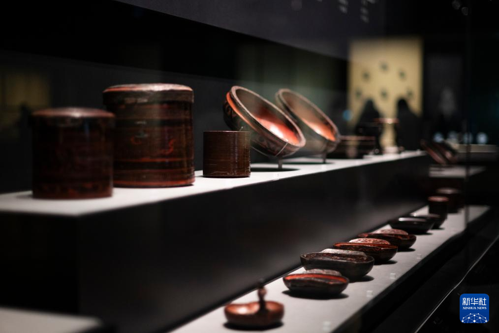12月31日,观众在参观秦汉漆器。
