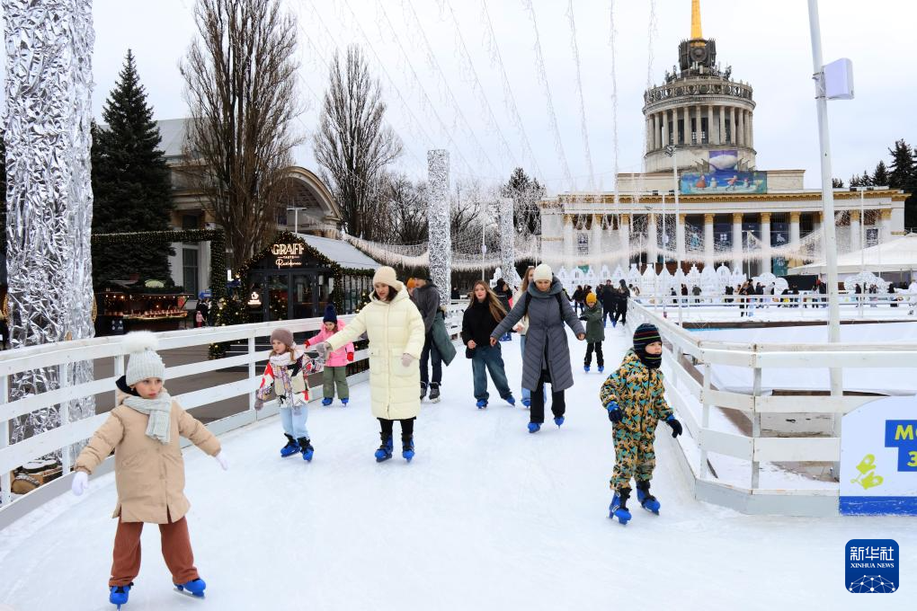 12月28日,民众在乌克兰首都基辅市的乌克兰展览中心溜冰。