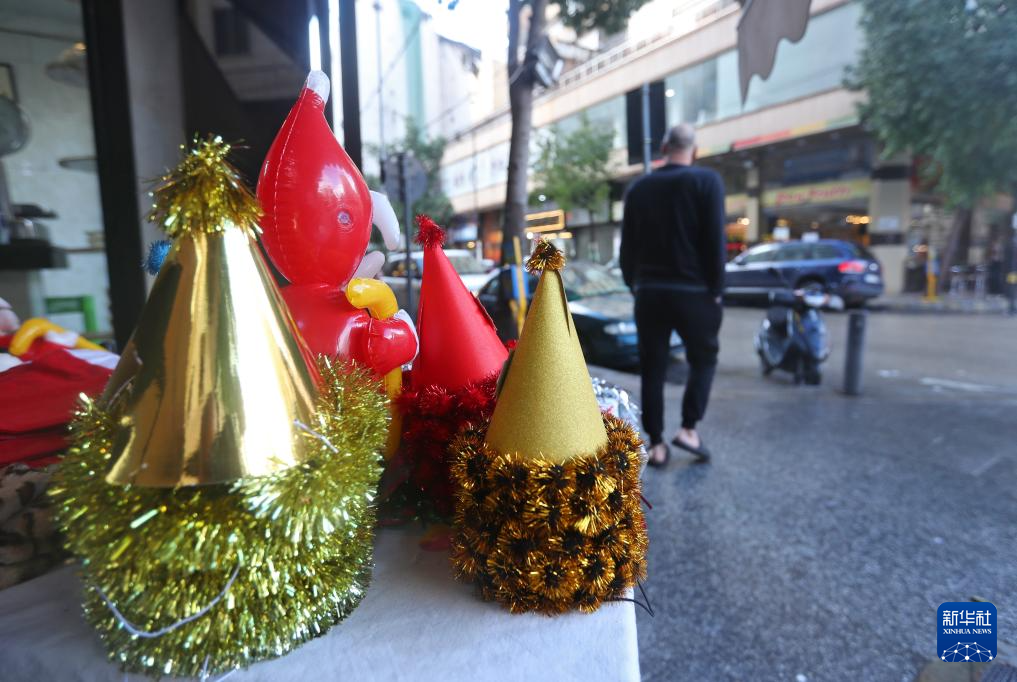 这是12月31日在黎巴嫩贝鲁特拍摄的为新年夜准备的装饰品。