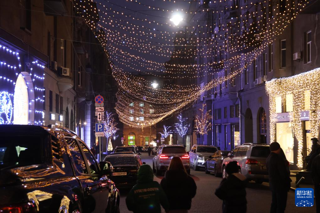 12月30日,乌克兰首都基辅市的一处街道点亮新年彩灯。