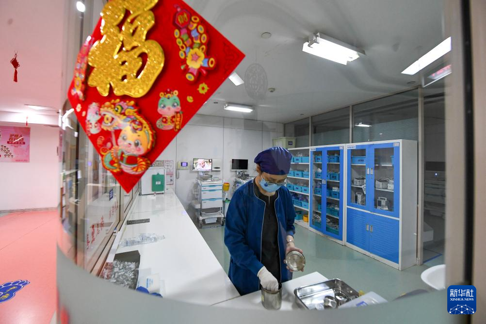 2025年1月1日凌晨,在位于吉林长春的吉林大学白求恩第一医院妇产中心产科,主治医师陈忱检查用品。