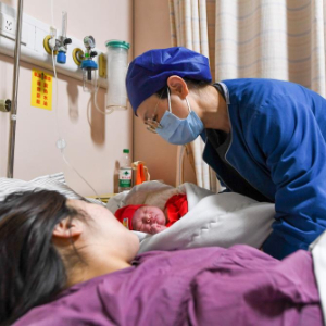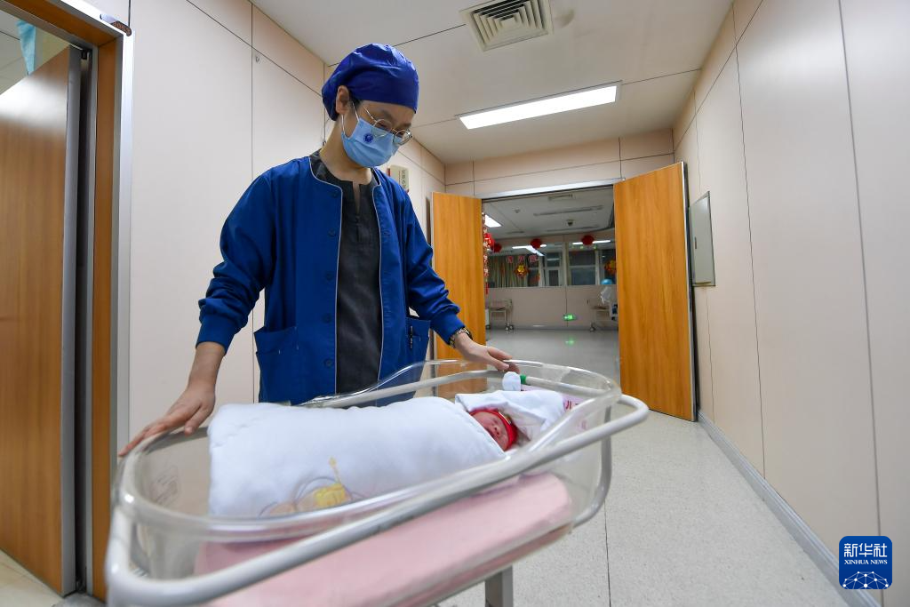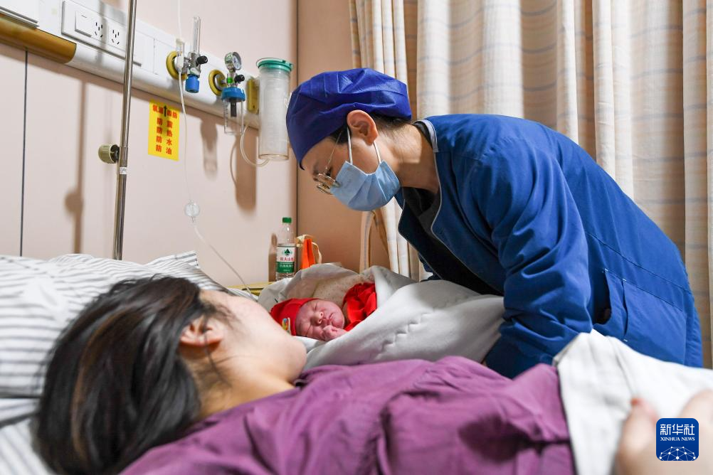 2025年1月1日凌晨,在位于吉林长春的吉林大学白求恩第一医院妇产中心产科,主治医师陈忱将新生儿推出产房。