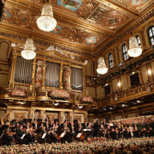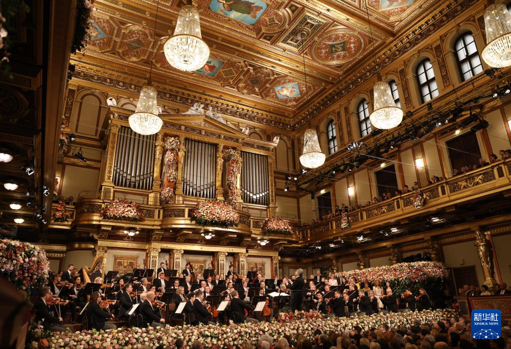 1月1日,维也纳爱乐乐团在奥地利维也纳金色大厅新年音乐会上演奏。