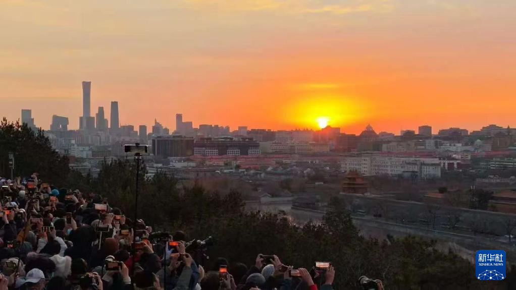 2025年1月1日,人们在北京景山公园迎接新年第一缕阳光。
