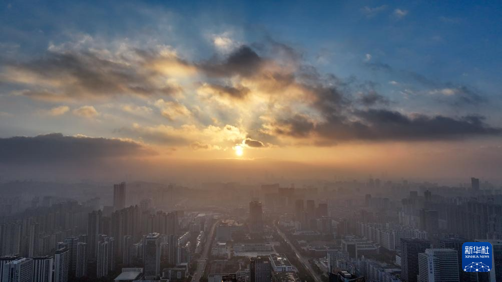 2025年1月1日在云南省昆明市拍摄的日出景象(无人机照片)。