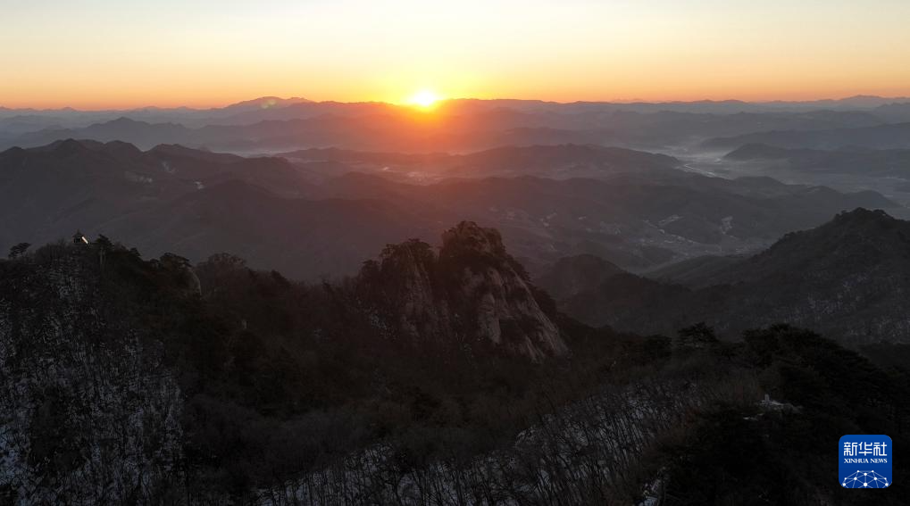 2025年1月1日在辽宁千山景区拍摄的日出景象(无人机照片)。