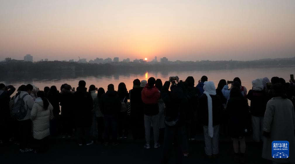 2025年1月1日,游客在杭州西湖迎接新年第一缕阳光。