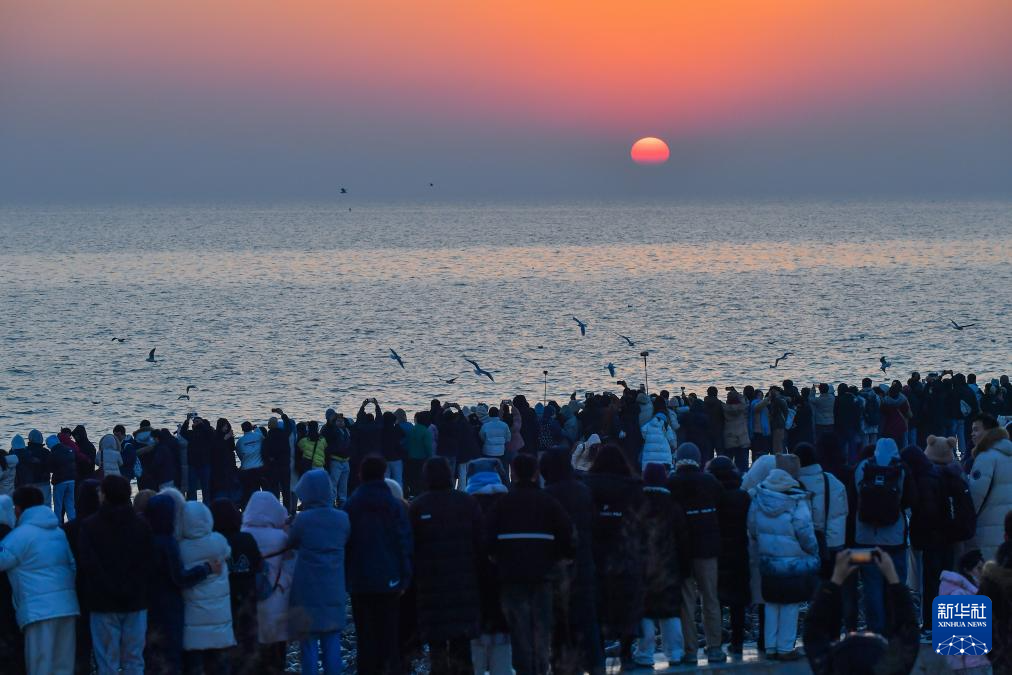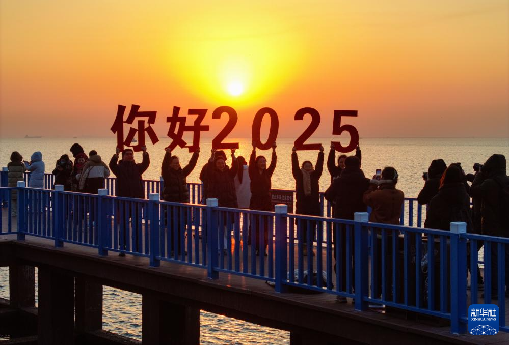 2025年1月1日,游客在天津市滨海新区东疆亲海公园迎接新年第一缕阳光。