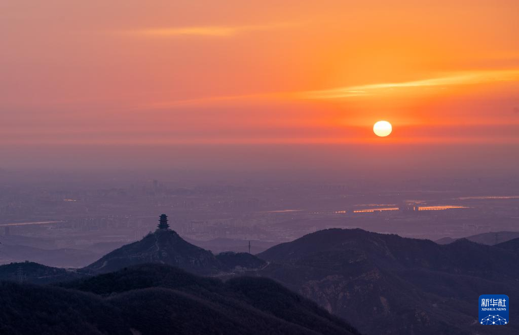 2025年1月1日在北京潭柘寺拍摄的日出景象。