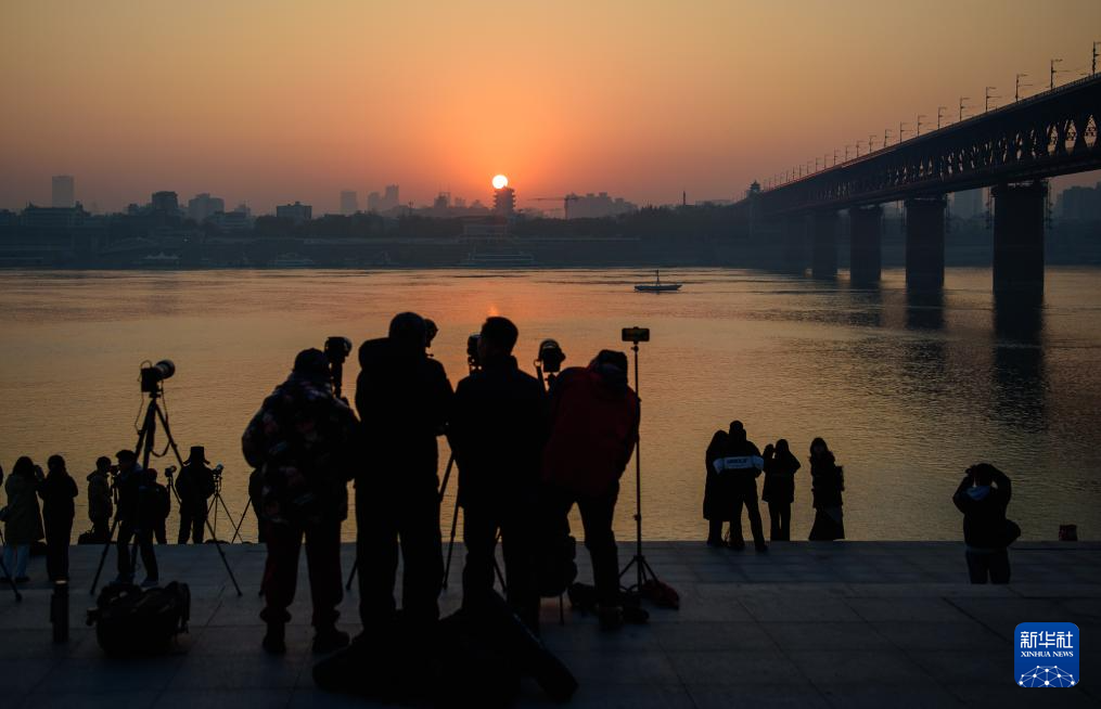 2025年1月1日,市民在湖北省武汉市长江边迎接新年第一缕阳光。