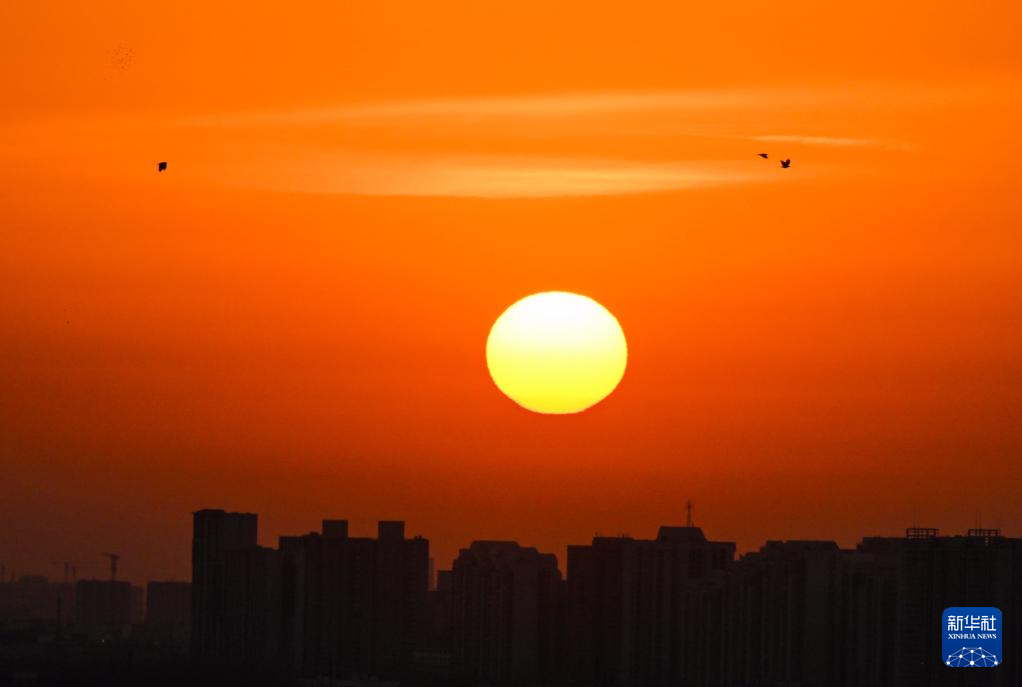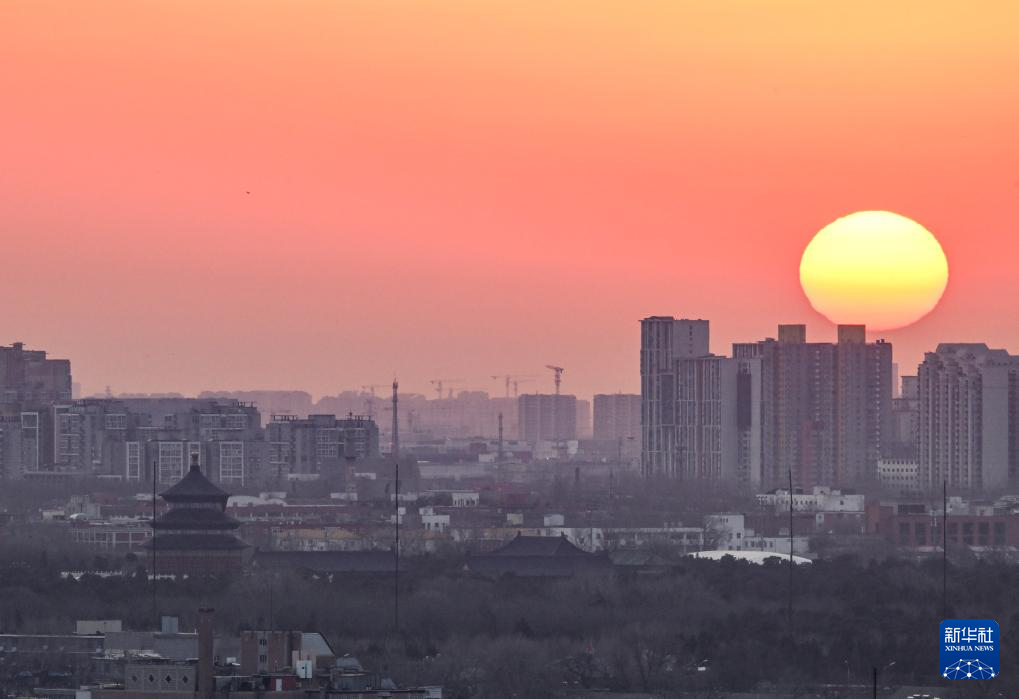 2025年1月1日在北京市区拍摄的日出景象。