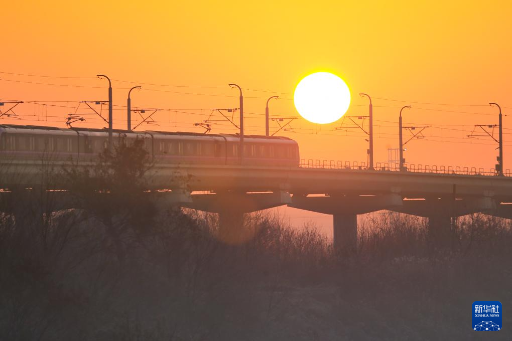 2025年1月1日,列车沐浴朝阳的光辉行驶在江苏省镇江市境内。
