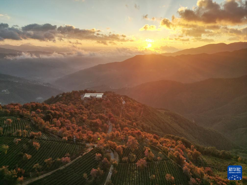 2025年1月1日在云南省大理白族自治州南涧彝族自治县无量山樱花谷拍摄的日出景象(无人机照片)。