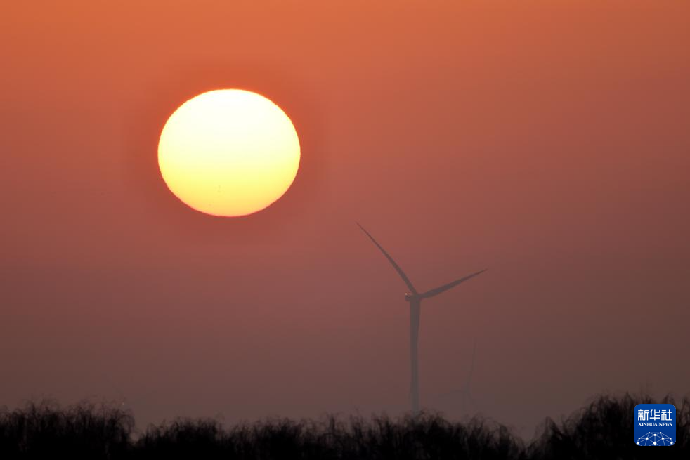 2025年1月1日在江苏省淮安市洪泽区拍摄的日出景象。