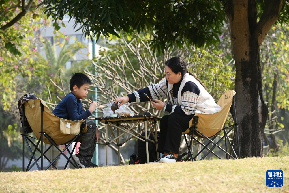 2025年1月1日,市民在广西南宁市南湖边休闲。