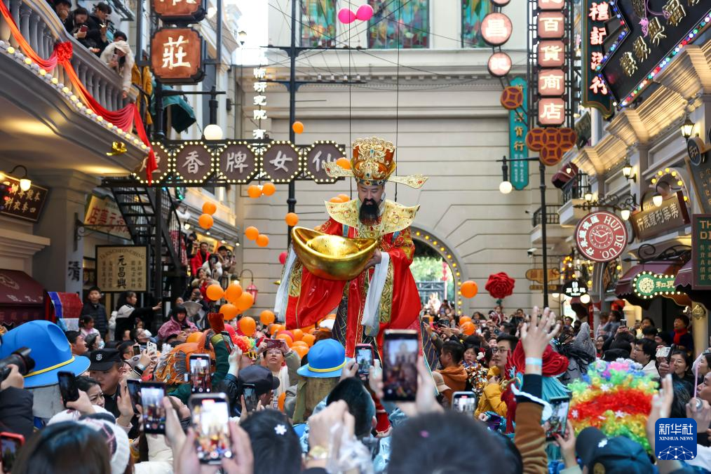2025年1月1日,人们在上海千古情景区观看新春巡游。
